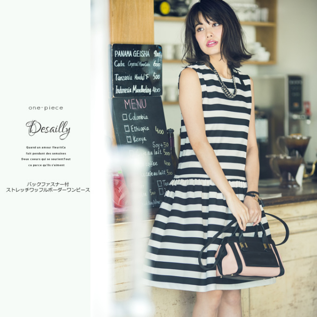 バックファスナー付ストレッチワッフルボーダーワンピース Desailly ディセリー Tocco 14 Summer Collection